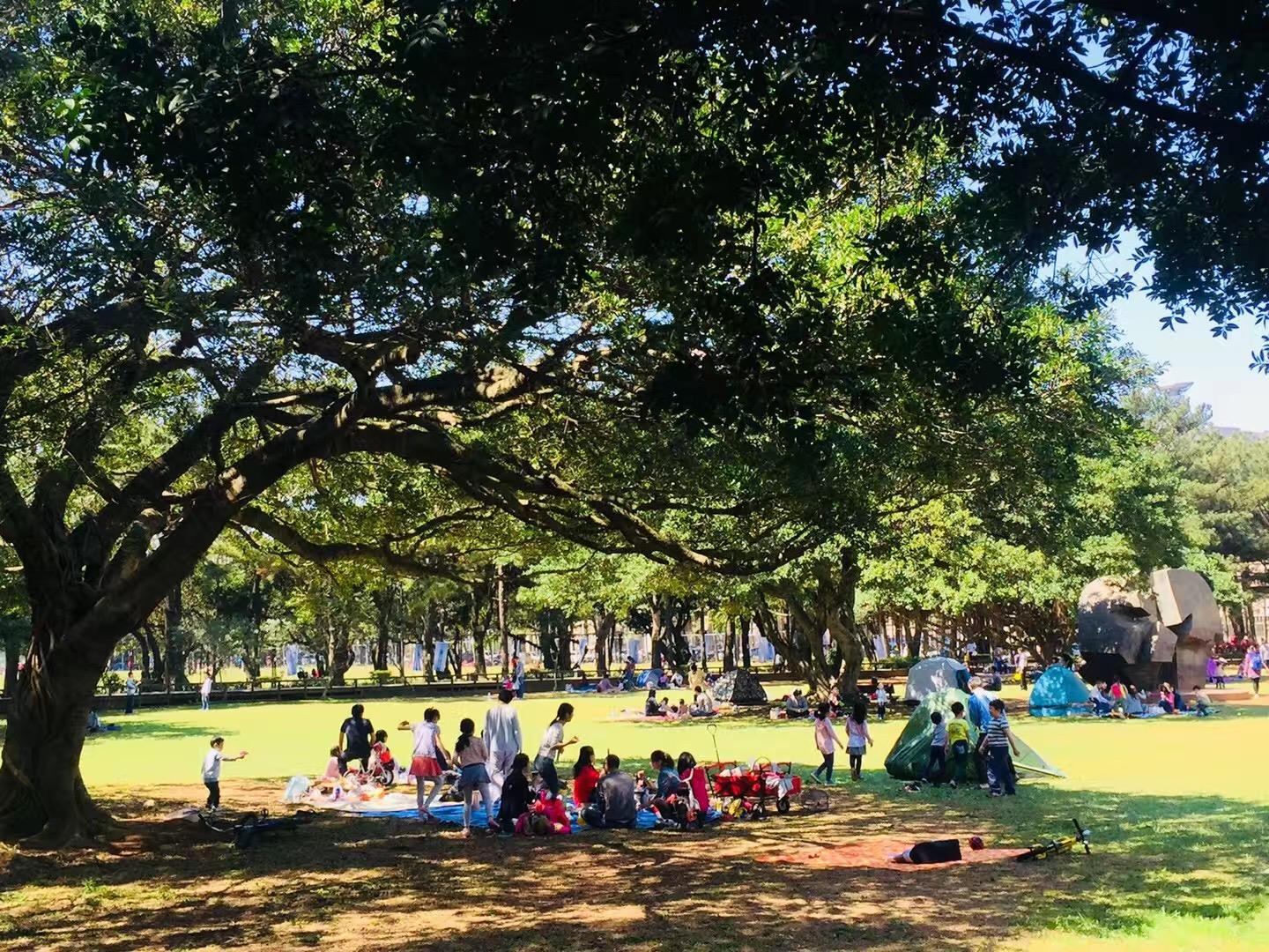 学校大草坪上一个寻常周末亲子时光