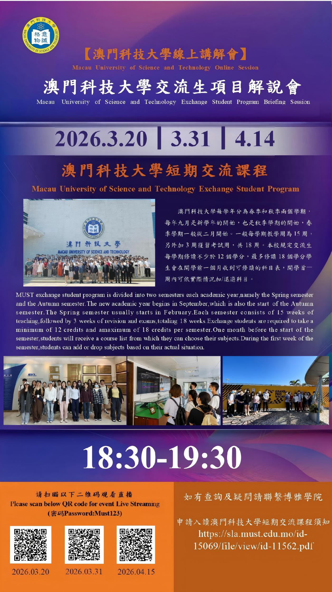详细请留意《申請入讀澳門科技大學短期交流入學須知》